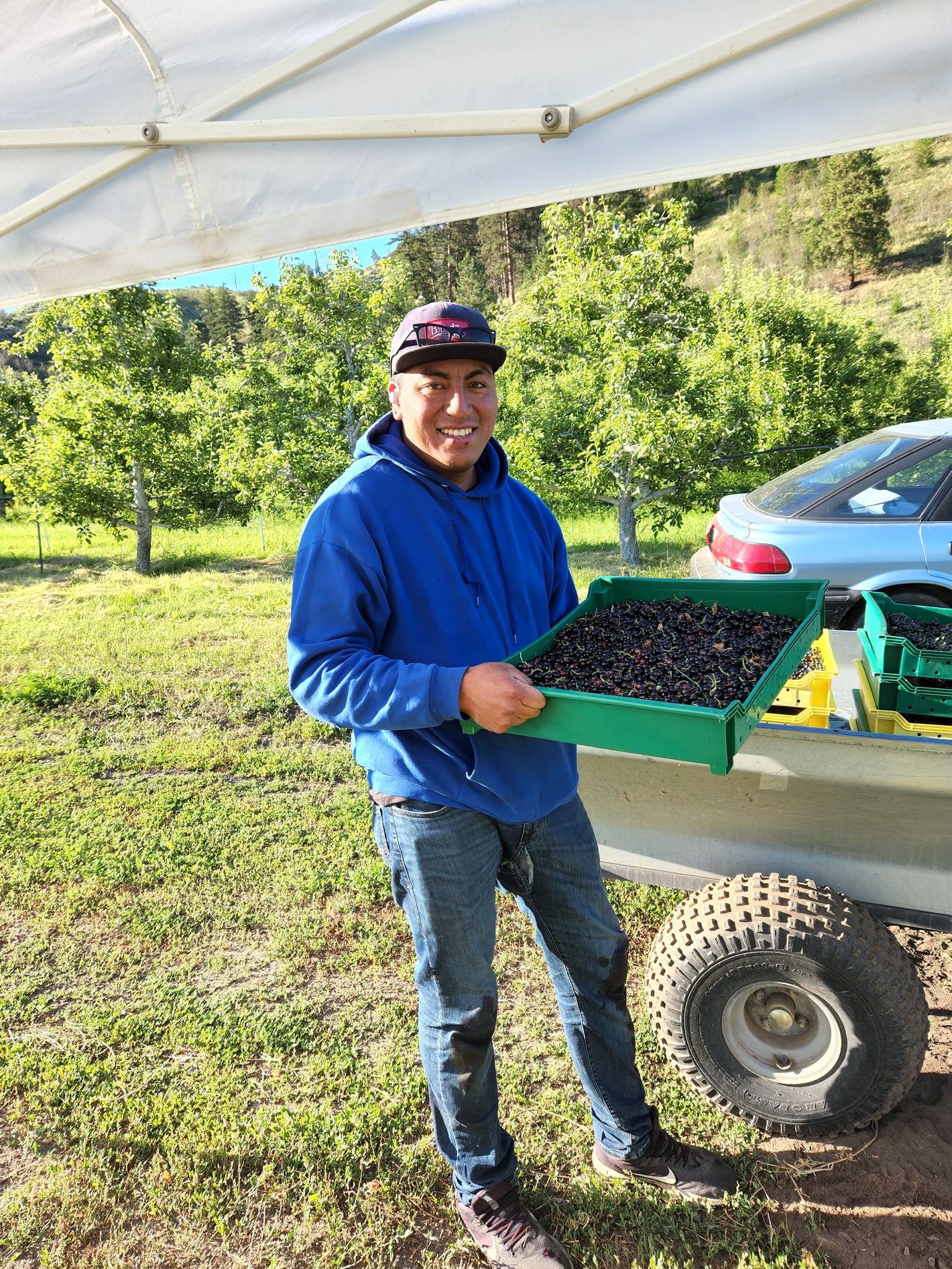 Miembro del Equipo de HuertaJaime López ha estado en los Estados Unidos temporeramente desde 2020 como trabajador H-2A. Su padre trabaja en Whitestone desde 2014 y Jaime dice que es una alegría poder venir con él y pasar todo este tiempo juntos. Dice que el trabajo a veces es difícil, especialmente al principio, pero es de esperarse. En México, Jaime solía trabajar en el campo después de la escuela, así que está acostumbrado. En Washington hay diferentes tipos de cultivos que son muy raros de donde él es, por lo que Jaime ha aprendido nuevas técnicas durante este tiempo; ahora mismo se ha vuelto más fácil para él. Actualmente, lo que más le gusta es recoger cerezas.